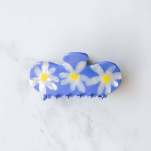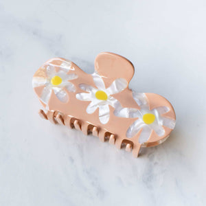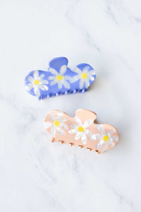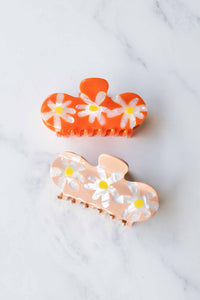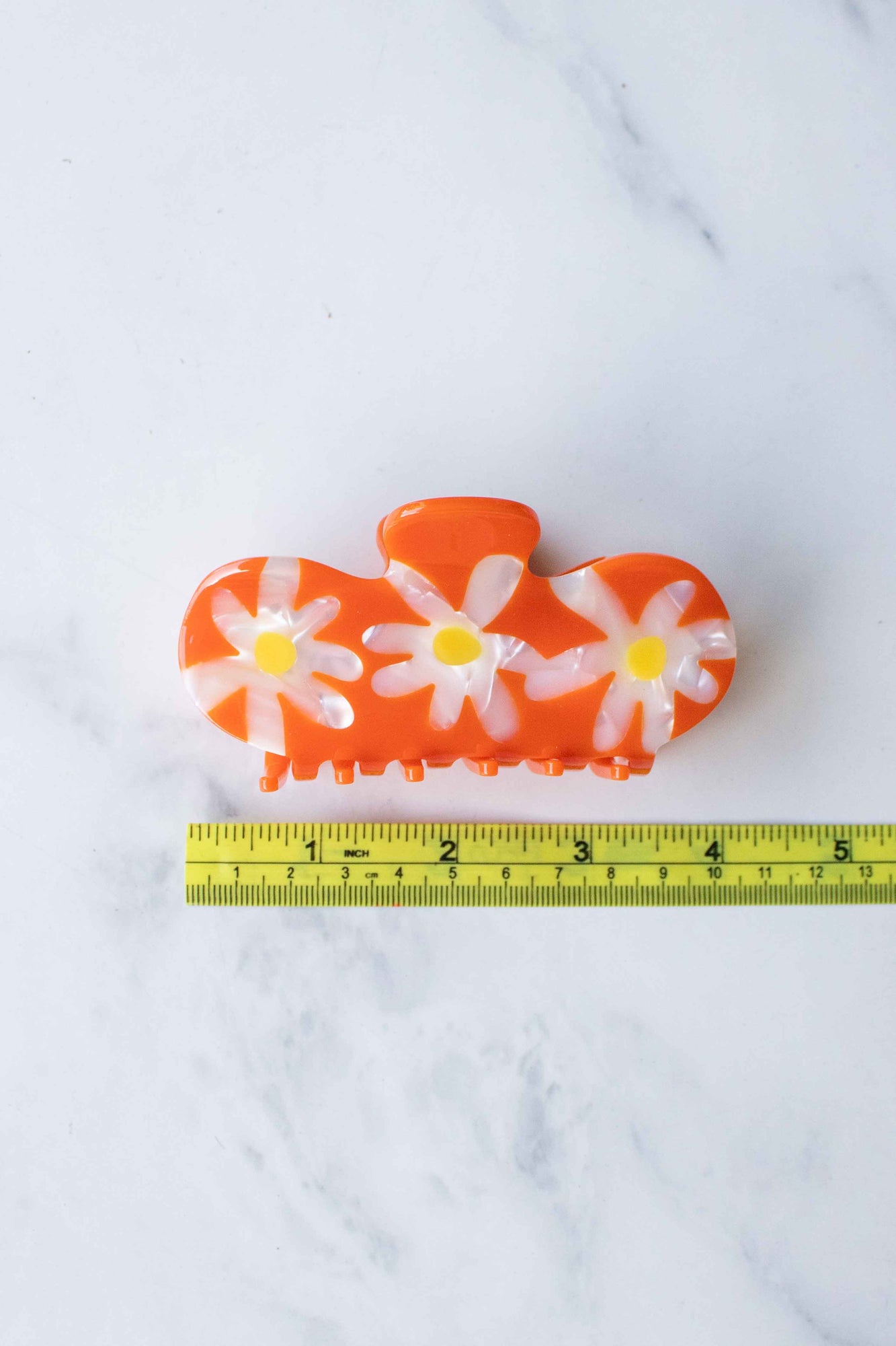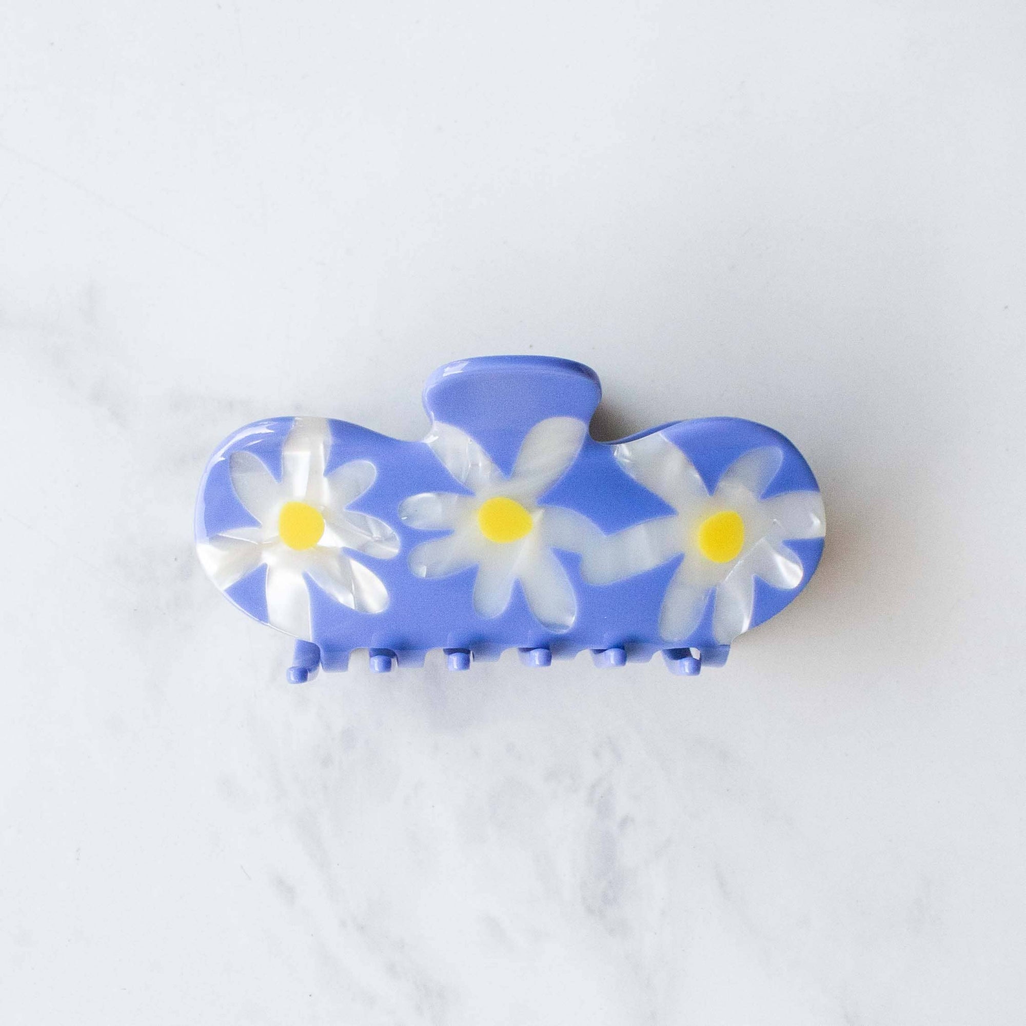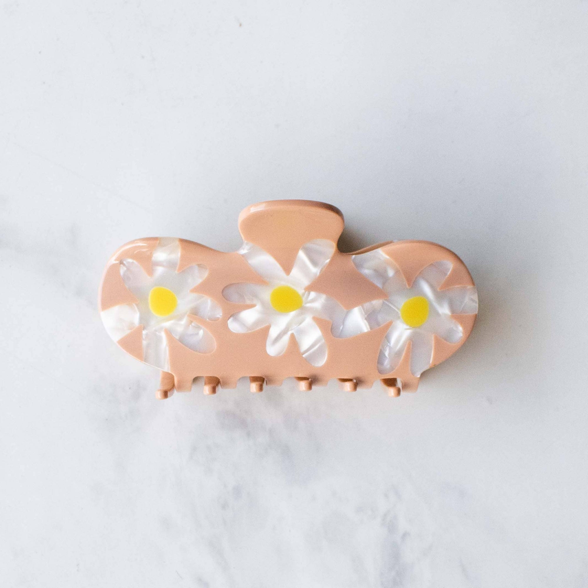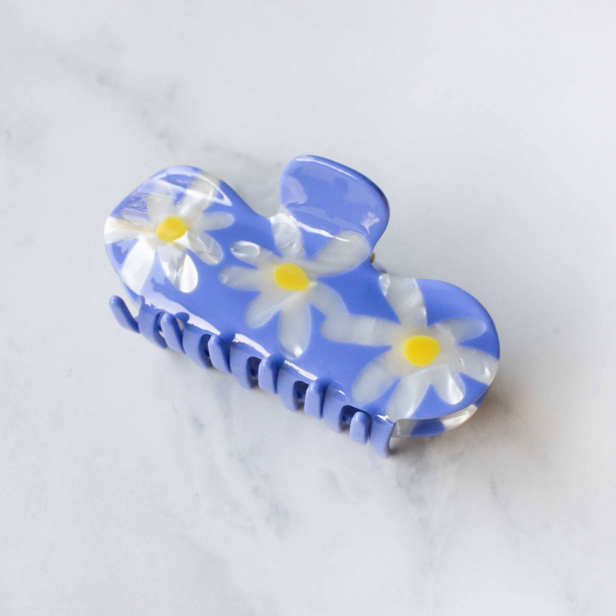 Material: Cellulose Acetate Usage: Secure and stylish hair accessory for daily wear or special events Enhance your hairstyle with these charming floral hair claw clips. These clips feature a vibrant daisy design on a glossy finish, adding a touch of elegance and playfulness to your look. The sturdy claw mechanism provides a secure grip, making them perfect for all hair types. Available in four stylish colors-Amber,Blue,Mocha, and Orange-these clips are ideal for everyday wear or special occasions. Perfect for adding a cute and trendy accent to any outfit!